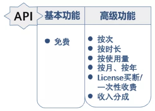 API 接口可以面向企业客户,也可以面向第三方开放,其销售可以采用月租、年费、一次性收费或收入分成的方式。