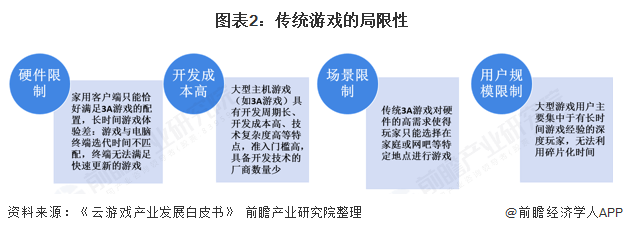 目前传统模式游戏以主机/PC端游戏为主,对游戏用户终端设备有较高的要求,用户需要花费较多的成本购买游戏显卡等设备,同时传统游戏需要下载游戏客户端,客户端往往会占用用户大量的内存。而云游戏无需用户购置高端显示器等硬件终端,节约了用户的成本,同时不受终端现制,极大地提高了用户的便捷性,这些优势将吸引更多因大型游戏限制多而选择放弃游戏的潜在用户成为云游戏玩家。