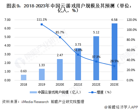 随着我国5G网络的加速普及,将提升游戏玩家对云游戏的参与度,驱动云游戏用户规模快速增长。预计未来三年,中国云游戏用户将保持较高的增长速率,至2023年云游戏用户规模有望达6.58亿人。