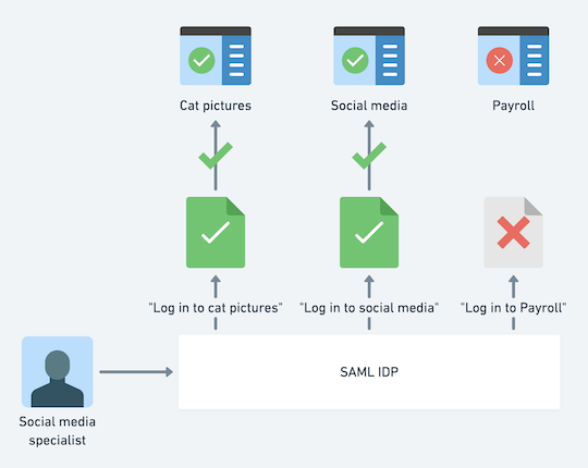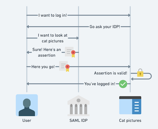 一旦你的IDP接收到身份验证请求,IDP将验证你是否已登录(可能是密码、可能是客户端证书),然后签署一个断言。断言是SP将验证并用于登录你的内容。然后,你的IDP将此断言发送回SP。SP验证密码签名,验证该断言是否应该发送到特定的SP,并提取相关的用户名和其他字段。现在,你可以看所有你想看的图片了!