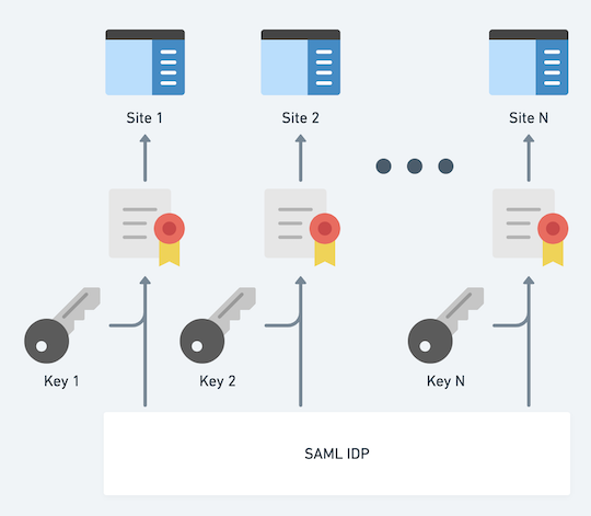 如果你的IDP确实支持这个功能,为你的新应用程序发出每个sp的签名密钥。使用旧的证书迁移应用程序需要做很多工作,但是如果你有特别敏感的应用程序,则值得这样做。