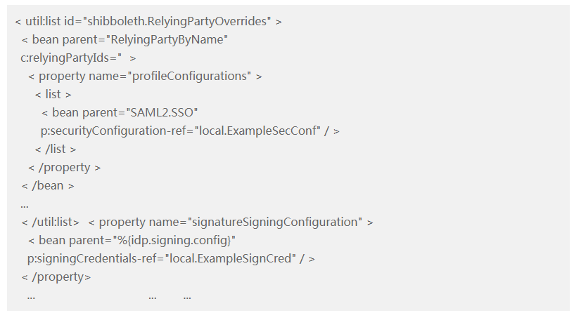 conf/relying-party.xml的示例配置(Shibboleth文档):
