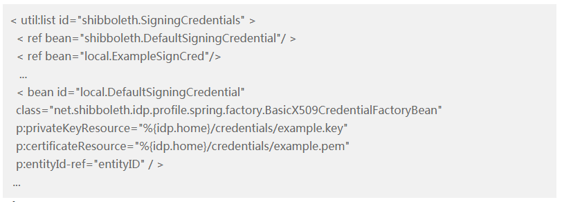 conf/credentials.xml的示例配置(Shibboleth文档):
