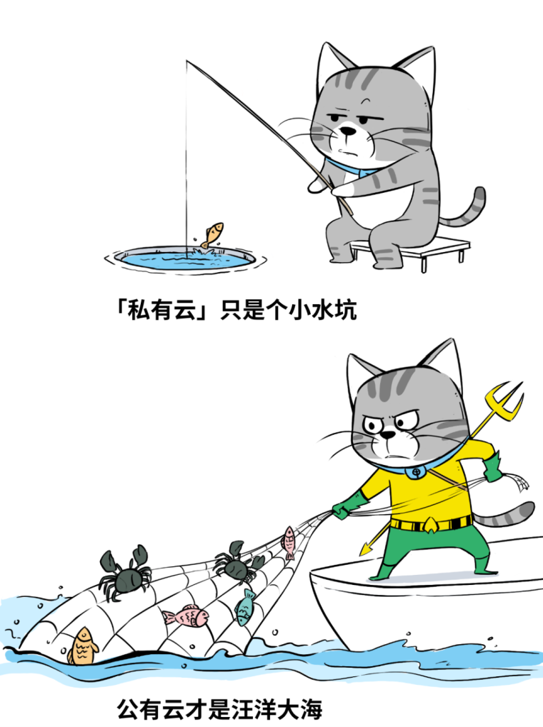 第一,我们谈到的绝大多数云的价值和优势,都是「公有云」,而不是「私有云/专有云」。
