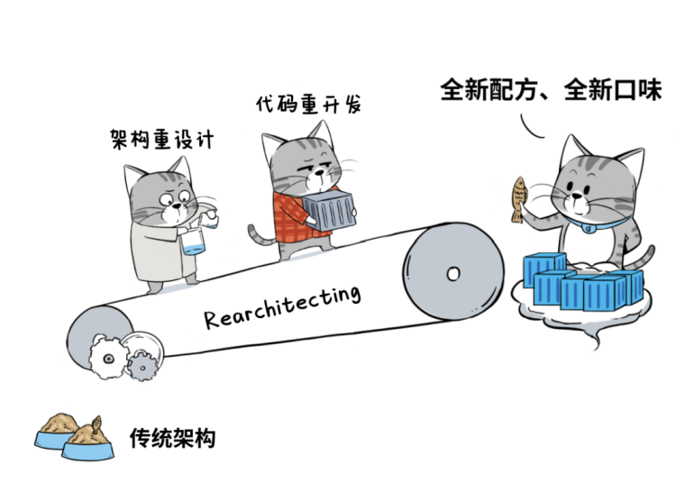 涉及到架构重新设计,比如集中式改为分布式、微服务化,甚至无服务器架构,代码需要重新开放,改造周期最长、代价最大,当然“改头换面”之后,对企业转型升级的影响也是最明显的。