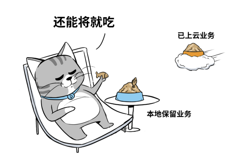 企业中往往还有一类应用,要么无关痛痒,迟早被数字化大潮抛弃,但短时间内又能“凑合”着用,要么是传说中的“稳态”核心业务,架构变更代价过大。