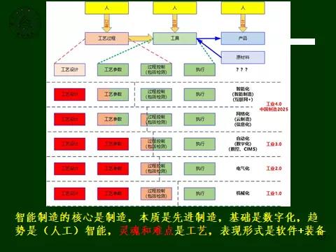 智能制造的核心是制造,本质是先进制造,基础是数字化,趋势是(人工)智能,灵魂和难点是工艺,表现形式是软件+装备。
