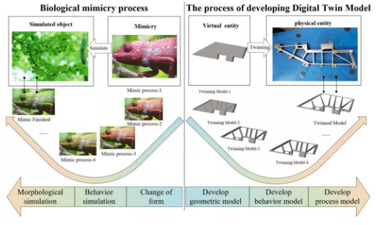 针对以上问题,本文提出了一种基于生物拟态的数字孪生建模方法,该方法能够自适应地构建加工过程的多物理数字孪生体。利用这种方法,我们开发了多个数字孪生子模型,如几何模型、行为模型和过程模型。这些数字孪生子模型可以相互作用,构成物理加工过程的完整真实表示。为了验证所提出的基于仿生的数字孪生建模方法的有效性,我们对该方法在导弹空气舵的加工过程的监控中进行了测试。