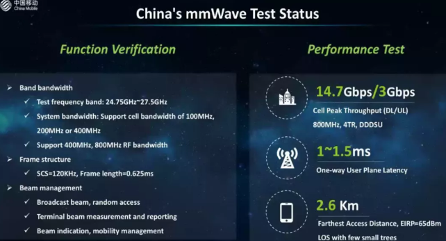 目前国内关于毫米波的测试早已启动,正在紧锣密鼓地进行之中。据中国移动专家介绍,外场测试的结果跟理论分析数值比较吻合,有效提升了行业对毫米波的信心。
