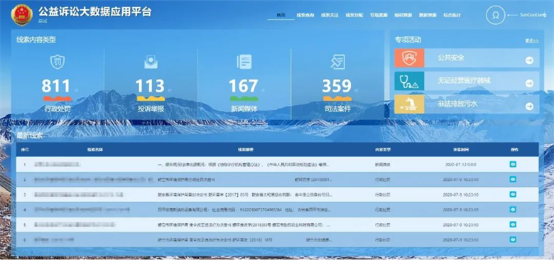 “公益诉讼大数据应用平台”,以互联网+、大数据和人工智能、云计算等技术破解业务难题。2016年由长春市人民检察院牵头进行试点建设,目前已经在吉林省全省推广。在四川、甘肃、内蒙、江苏、安徽、福建、山西等省份签约且建设成果突出。在辽宁,黑龙江,重庆,陕西等省开展试点,效果显着。平台利用大数据拓宽案件来源渠道,通过人工智能手段,辅助检察官办案。通过行政对接数据和互联网舆情专项数据,为行政公益诉讼、非诉执行、违法行政行为监督等业务不断提供案源线索和办案辅助数据支撑,得到行业专家和客户的高度认可。