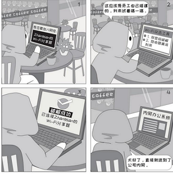 Wi-Fi信号具有一定的覆盖范围,不仅在工作区域内可以连接,甚至在办公楼附近也可以接入。员工私自搭建的Wi-Fi加密方式通常较弱,一旦被破解,会导致攻击者直接访问办公网络的风险。