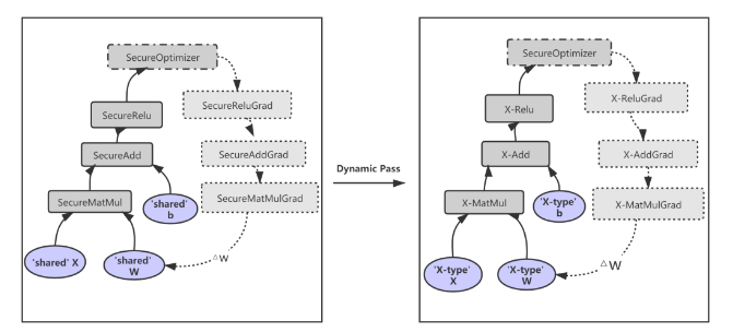 另一个是在SecurOp的实际执行时所进行的Dynamic Pass处理,会动态的根据当前用户选择的协议选择对应的实际算子实现去执行,同时可以在此时嵌入基于执行上下文的优化处理。