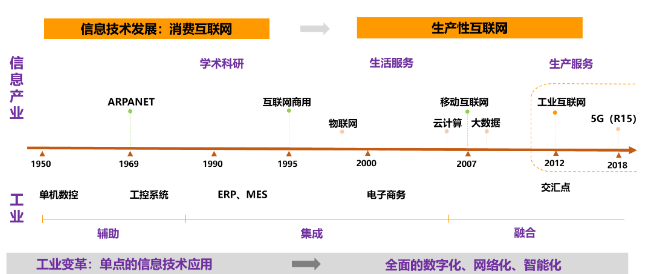 2020年3月中共中央政治局常务委员会在会议中强调要加快5G、数据中心、工业互联网等新型基础设施建设进度。2020年3月20日工信部发布《关于推动工业互联网加快发展的通知》,提出六个方面二十项举措,旨在推动工业互联网在更广范围、更深程度、更高水平上融合创新,落实中共中央关于推动工业互联网加快发展的决策部署。