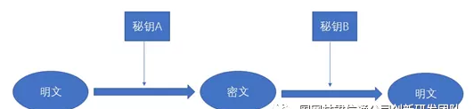 对称加密指的是加密和解密使用同一秘钥(即秘钥A和B相同),即私钥。常见的对称加密算法有:DES,AES,3DES等。