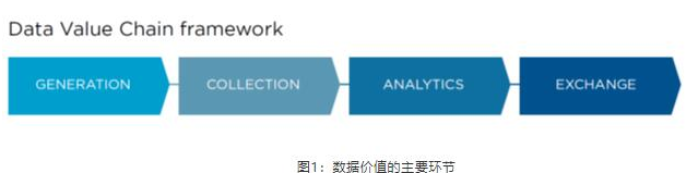 本文在之前研究的基础上,讨论区块链在数据价值链的不同环节能发挥的作用。根据全球移动通信系统协会2018年报告[1],数据价值链主要可分为4个环节(图1):一是数据生成,指数据记录和获取。二是数据收集、验证和存储。三是数据分析,指处理和分析数据以产生新的洞见和知识。四是交换,指对数据分析结果的使用,既可以是内部用,也可以对外转让,这个环节称为“数据要素配置”更合适。本文共分5部分,前4部分依次按上述4个环节展开,重点是对第4个环节的讨论,第5部分总结全文。