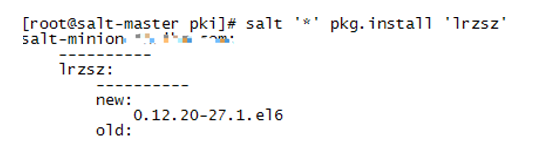 批量安装软件也是日常运维中的家常便饭,我们可以通过SaltStack的软件推送功能,对所管理的服务器进行进行相关软件的批量安装。如图14所示的指令为批量安装软件lrzsz在客户端服务器中。