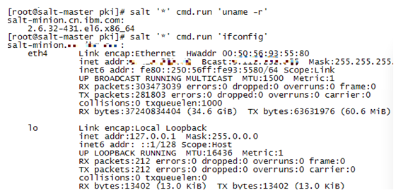 *代表对所有的被管理客户端进行操作,cmd.run是命令调用模块,ifconfig是具体的执行命令。