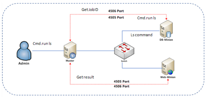 Master上执行某条指令通过队列下发到各个Minions去执行,并返回结果。