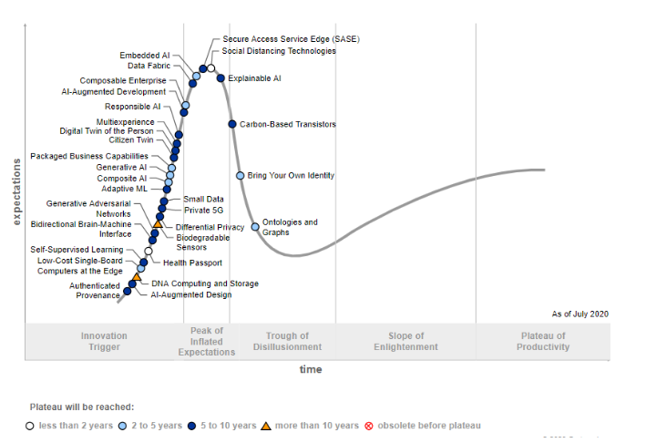随着AI逐渐成为主流并转向他们承诺一系列好处,这是企业不能忽略的发展趋势。实际上,在最近的2020年Gartner新兴技术发展曲线图中,所列技术中有三分之一以上与AI有关。