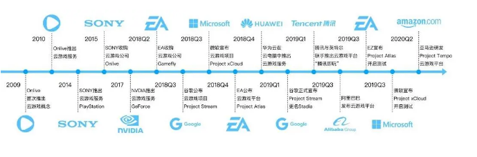 众所周知,2019年被称为“5G元年”,各家巨头开始借着5G的“东风”入局云游戏市场。在国外,有谷歌的Stadia、微软的Project xCloud、亚马逊的Project Tempo,包括此前就已经布局云游戏的艺电EA、收购Onlive的索尼以及英伟达。
