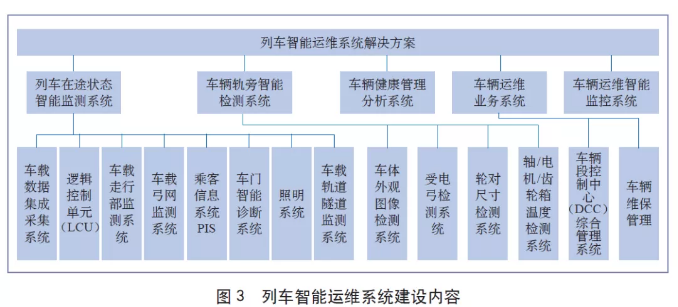 广佛城轨列车智能运维系统建设内容包括3个层次:1个列车智能运维系统解决方案,5个核心子系统,N个关键子设备,如图3所示。