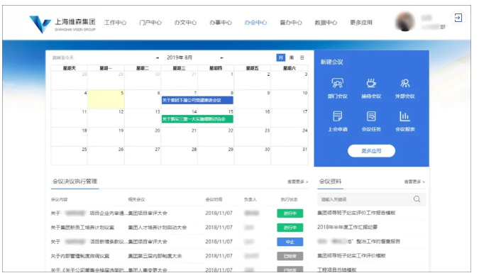 通过流程、建模等功能,实现会前议题提报、可视化会议资源、会务安排、会议冲突提醒、会议资料上传、会议布局排座、会议大屏、会议签到、会议纪要、会议决议管理等一站式、无纸化的会议管理。