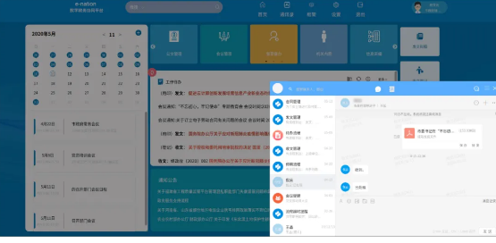 门户中搭载了信创环境的即时通讯工具,无需安装客户端,直接进行交流与提醒,快速发流程、发文件,同时具有防止高密低传的特点,信息必达。