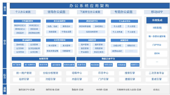 2、丰富的信创办公应用:提供了覆盖个人办公、综合办公、领导决策、经营管理、业务协同等全方位的流程和成熟应用,并可以根据组织管理特性进行快速配置与修正。
