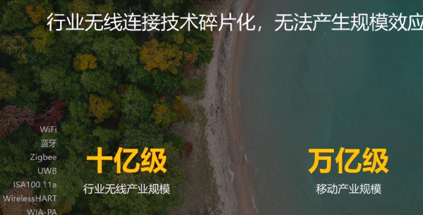 杨超斌强调:“行业网络应用以往都是采用有线的方式实现的,这对很多行业应用造成了限制。而要打破这一限制,就一定要破除行业无线连接技术的碎片化问题。在过去20年里,全球很多公司做了大量的探索,希望能够把行业的连接通过无线的手段解决,但是过去大量的技术过于碎片化,每一个技术只是聚焦在自己特别狭窄的一个行业里面。因此目前相比较于移动产业万亿级的规划,Zigbee、UWB、蓝牙、WiFi、ISA100.00a、WirelessHART、WIA-PA等协议的产业规模全都没有超过十亿级的。这种量级的市场体量,无法产生规模效应,自然也就无法实现万物互联,因而肯定会给5G的行业化应用设置障碍。如果每个行业单独建一张网,每个行业肯定是投资不起的。因此,5G的行业应用趋势,一定要实现各个行业能够共享一张网络,来实现自己的数字化转型。”
