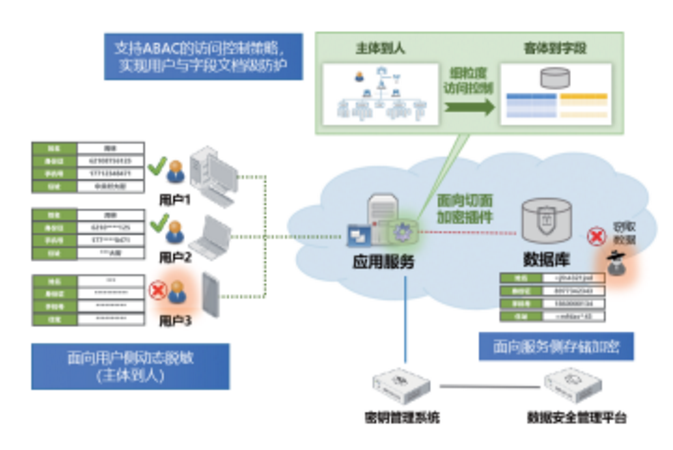 (2)融入数据使用场景的细粒度加密防护提供“主体到应用内用户,客体到字段级”