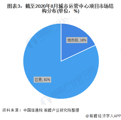 从项目建设级别来看,截至2020年8月,34个综合类PPP城市运管中心项目中地市级项目有6个,占比为18%;区县级项目有28个,占比达82%。