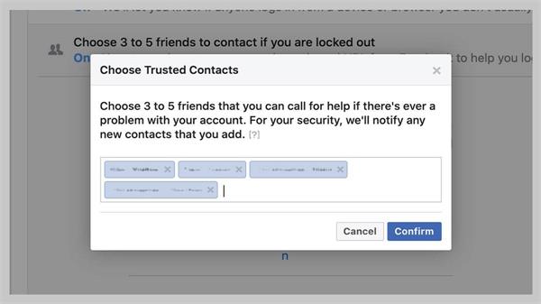 Facebook允许你指定一个可以帮助你恢复账号的朋友列表