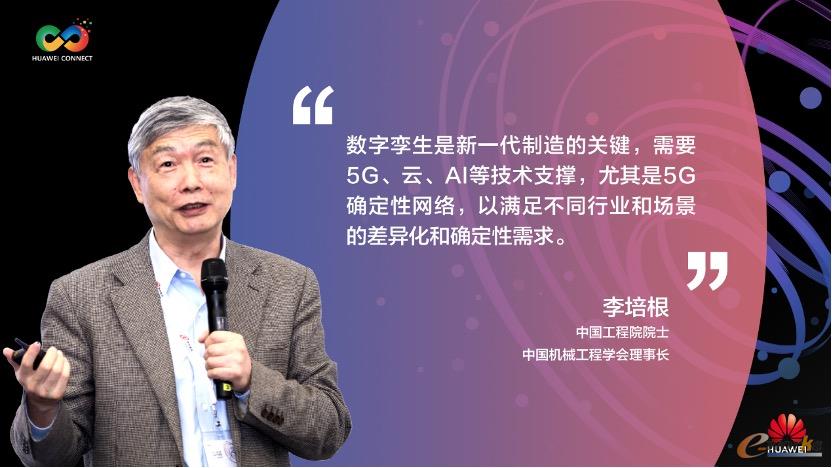 9月24日,5G确定性网络产业峰会在华为全联接2020(上海世博中心)现场成功举办。中国工程院院士、中国机械工程学会理事长李培根发表了“数字孪生需要5GDN”的主题演讲,阐述了5G确定性网络在新一代工业制造中的关键作用。