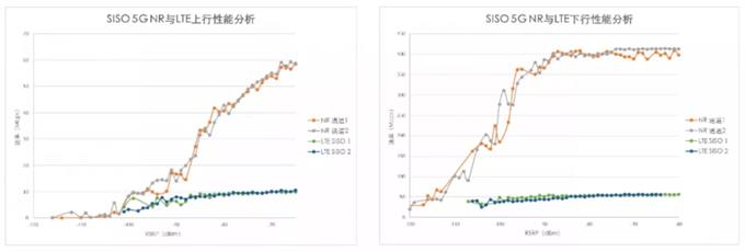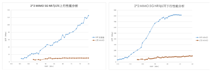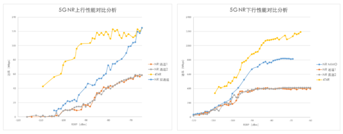 从下图2的测试结果可以看出,对比单路系统,双路系统升级到5G后的性能均有大幅度提升,相比LTE终端采用1T2R,5G上行边缘速率也有明显的提升。