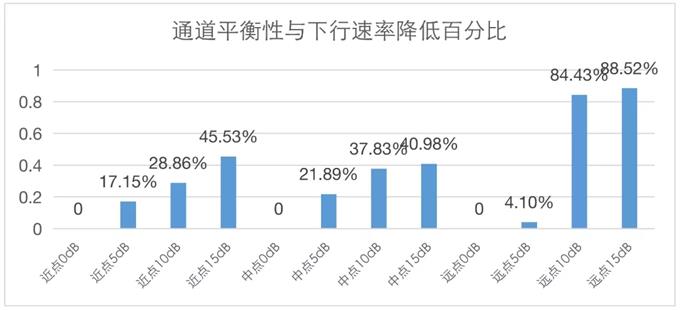 对于已部署LTE双路室分的系统,可进行5G NR直接升级,本节主要分析双通道不平衡对5G NR性能的影响。如图5所示,双通道差异5dB时性能损失速率约20%,双通道差异10dB时性能平均损失速率约30%,远点性能损失更大。因此,为保证5G性能,采用双路DAS系统建设时,应至少保证双路之间的电平差在5dB以内。