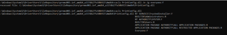 现在,出于测试目的,以SYSTEM用户身份,只需更改“ printconfig.dll”的权限。请记住,要进行备份!