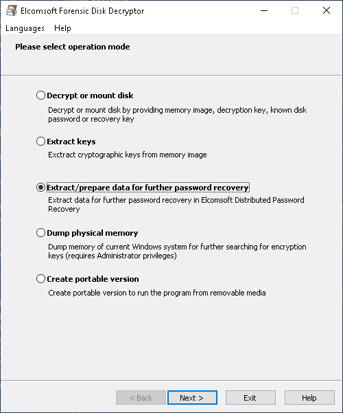 如果你在实验室中工作并且正在处理磁盘或磁盘映像,则将使用Elcomsoft Forensic Disk Decryptor,使用Elcomsoft Forensic Disk Decryptor提取加密元数据非常简单。