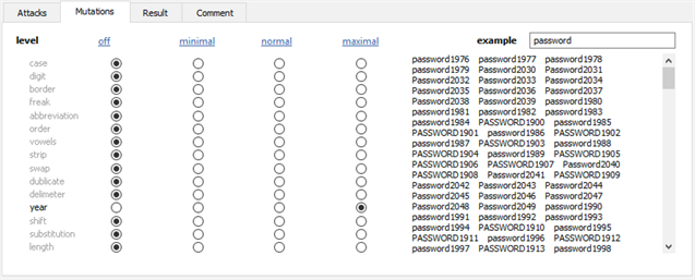 Elcomsoft Distributed Password Recovery提供了许多选项,可以自动尝试密码的最常见变体(例如Password1,password1967或pa $$ w0rd):
