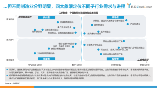 中国制造业规模较大、质量较好的企业基本都在A股市场,这些企业是中国制造业转型升级的风向标。但中国存有全球最全的生产体系,不同制造业分野明显,为了进一步定位细分制造业的转型升级发展情况,我们将19个制造子行业分成四大板块,领导者领域和挑战者领域是值得重点关注的领域。