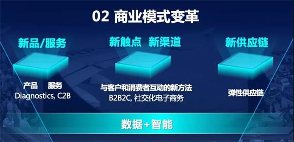 第三个方面是新供应链,怎么样做到一个弹性的供应链能够满足现在客户和消费者都有的个性化需求,并且是在可控的成本之下。这三个是我们在商业模式变革里面探讨的内容,数据和智能是能达到这三个方面创新的基石。