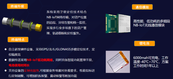 采用GPS/北斗/GLONASS多模定位技术,定位精度高,能够对资产位置的追踪、异常告警和统一监控。