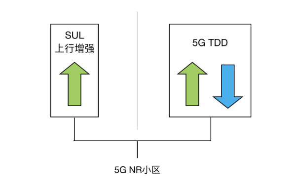 SUL,Supplement Uplink,即辅助上行,采用了上下行解耦技术。在FDD模式下,频段上下行成对;在TDD模式下,上下行共用一段频段。不管FDD还是TDD,上下行都是绑定在一起的。而SUL打破了上下行绑定于同一频段(或频谱成对)的传统限制。这样一来,就可以在原5G TDD频段上新增FDD频段或SUL专属频段来补充上行,提升上行能力,且仅补充上行。这就好比在原有的双向5G TDD车道上,新增了一条单向上行车道。
