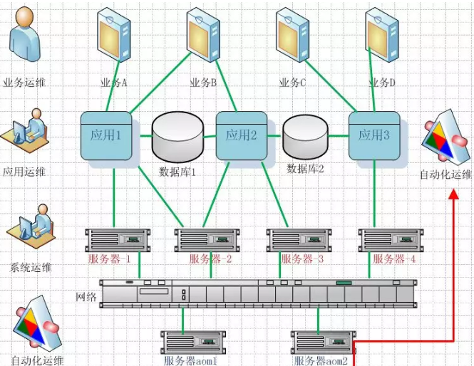 目前,自动化运维基本上都是以计算机主机、操作系统为对象的系统层面的操作,我称为基于系统层面的自动化运维。本文试图从应用层面探讨自动化运维的实现思路,系统运维实质性是对操作系统本身运行维护的一种特殊应用运维,业务作为一种或者多种应用系统的功能,通过业务--应用关联实现业务的应用遍历查询,通过与流程审批管理、服务管理等系统对接实现业务维护的自动化,从而实现全方位多角度的自动化运维平台。