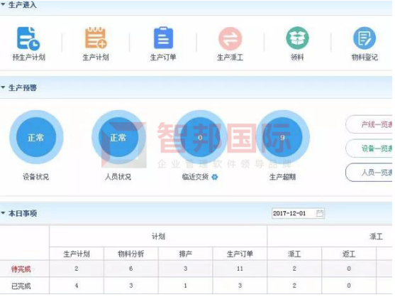 智邦国际工业企业一体化管理系统可视化生产工作台(局部图)