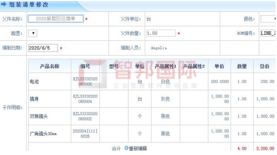 智邦国际工业企业一体化管理系统个性化配置组装清单