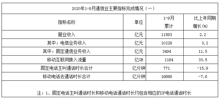 移动电话通话量降幅继续收窄,移动短信业务收入增速由负转正。前三季度,移动电话去话通话时长完成1.67万亿分钟,同比下降7.6%,降幅较上半年收窄2.7个百分点;固定电话主叫通话时长完成771亿分钟,同比下降15.9%,降幅较上半年收窄3个百分点。前三季度,全国移动短信业务量同比增长19.1%,增速较上半年回落5.2个百分点;移动短信业务收入同比增长0.8%,扭转前8个月的负增长趋势。