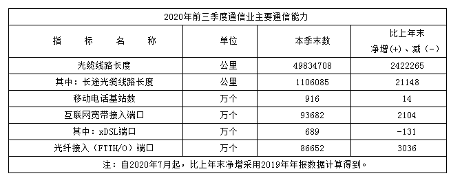 固定资产投资持续较快增长。前三季度,三家基础电信企业和中国铁塔股份有限公司共完成固定资产投资2913亿元,同比增长16.5%,增速较上半年回落4.6个百分点。