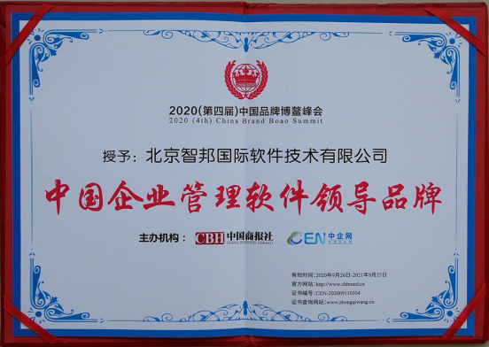 凝聚品牌力量,助推高质量发展。近日,由中国商报社、中国企业网联合举办的“2020(第四届)中国品牌博鳌峰会”,在海南博鳌亚洲论坛国际会议中心隆重举行。智邦国际以自身对客户、行业和社会带来的价值呈现,连获“中国企业管理软件领导品牌”、“中国质量信用标杆产品”2项殊荣。