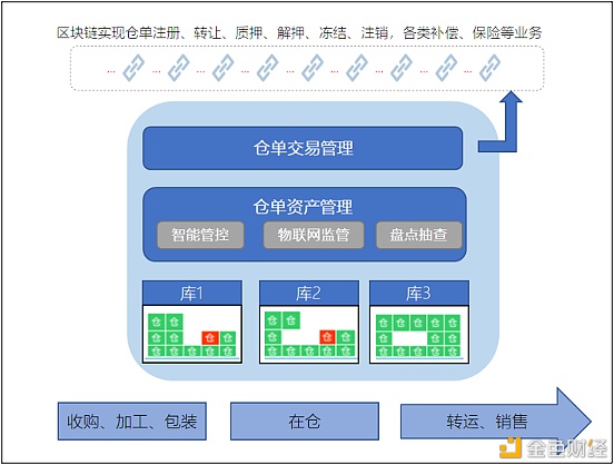(1)从仓储货物的入库、入库调整、锁定、质押、解押、出库、退货入库等全流程数据第一时间上链,杜绝数据信息造假,使得仓单数据流转自身能形成一个完整的闭环,数据能自证清白;