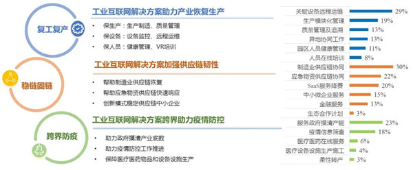 观点9:工业互联网解决方案为制造企业铸造一道防护墙,帮助电力、石化、钢铁、建材、机械、电子等供应链快速恢复的同时,助力应急物资供应链柔性调整,并发挥平台效应稳定上下游的中小企业。
